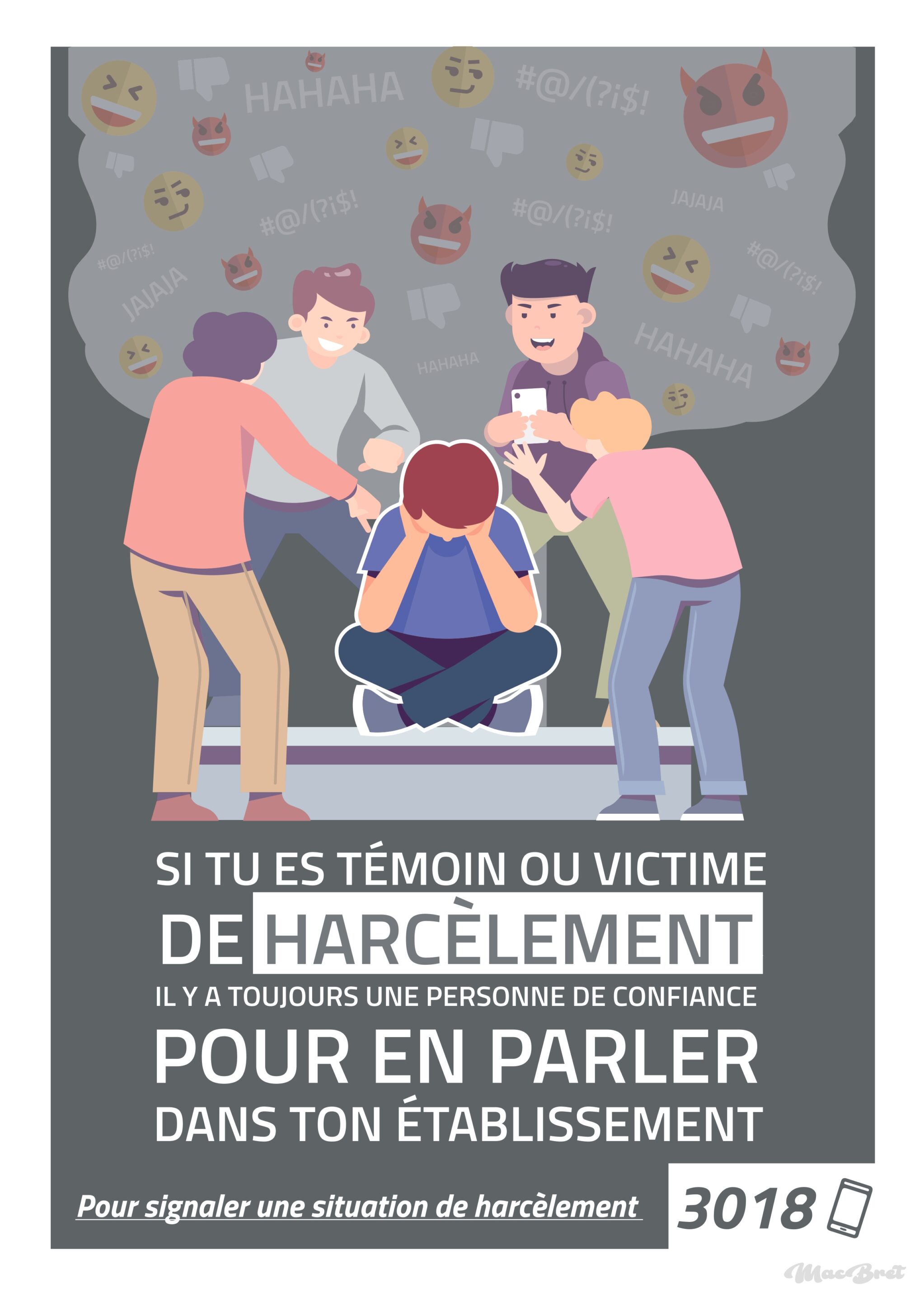 Que vous soyez témoin ou victime de harcèlement, il est essentiel d’en parler à un adulte afin qu’il puisse vous apporter son aide.