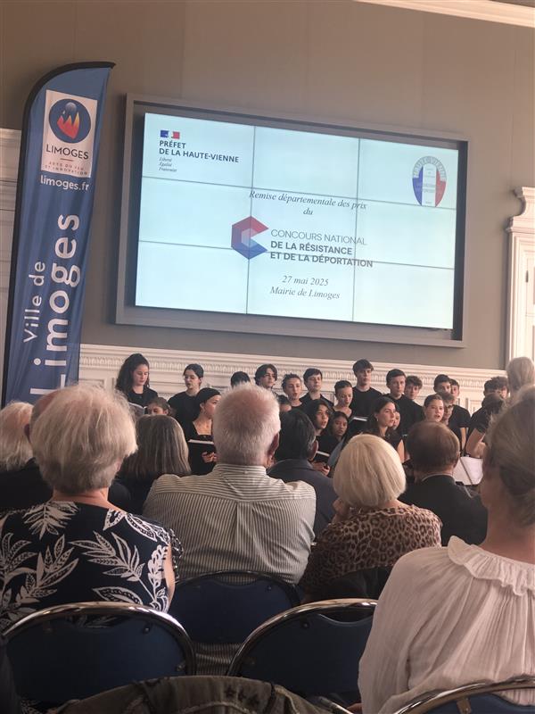 Ce mardi 27 mai 2025, à la mairie de Limoges, a eu lieu la remise des prix du Concours National de la Résistance et de la Déportation.